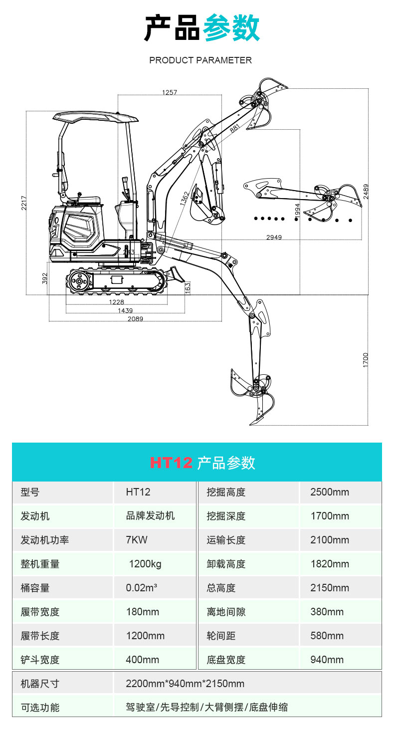 | 可選功能: | 動(dòng)臂擺動(dòng) |