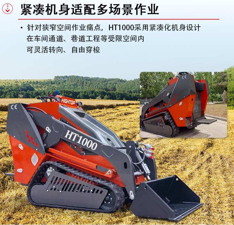 針對狹窄空間作業(yè)痛點,HT1000采用緊湊化機身設(shè)計,帶鏟斗狀態(tài)下整機長度僅2835mm,總寬度1140mm,轉(zhuǎn)彎半徑低至1528mm,在車間通道、巷道工程等受限空間內(nèi)可靈活轉(zhuǎn)向、自由穿梭。不帶鏟斗時1035mm的總寬度與835mm的軌距,進一步提升了場地適應(yīng)性,搭配1065mm的履帶接地長度與200mm履帶寬度,既能降低對地面的壓強,又能在復(fù)雜場地保持穩(wěn)定行駛,實現(xiàn)“小機身有大作為”。